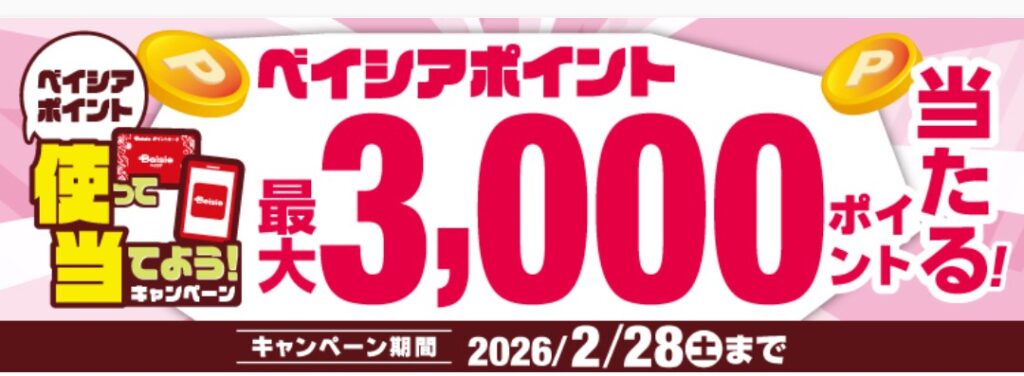 - ベイシアポイント 使って当てようキャンペーン第三弾 2/11~2/28