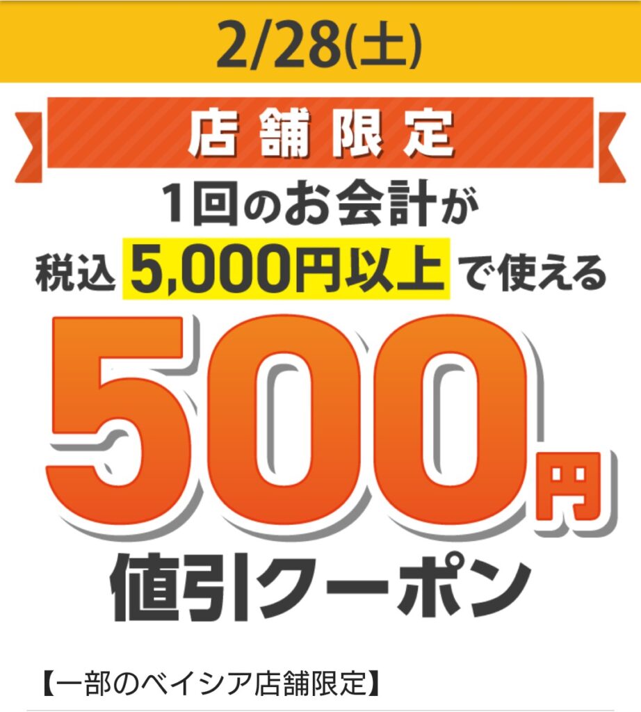 一部店舗限定 500円引きクーポン 2/28(土)限り