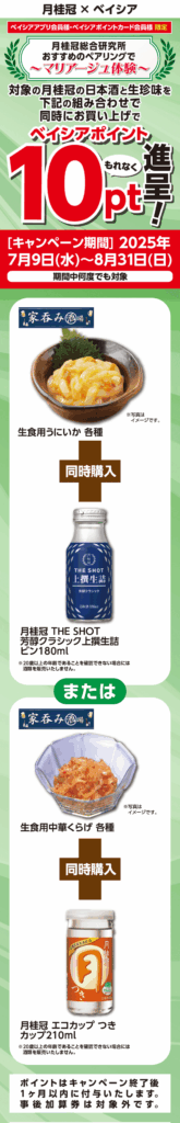 月桂冠 日本酒と鮮魚生珍味の同時購入ポイントキャンペーン 7/9~8/31