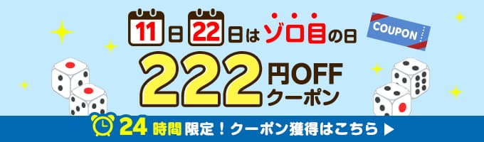 毎月11日・22日限定 ぞろ目の日 222円クーポン
