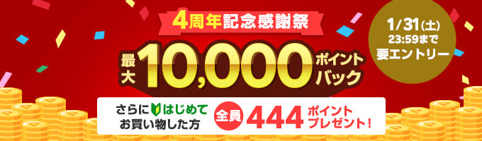 4周年記念感謝祭 最大10,000ポイントバック 1/4~1/31