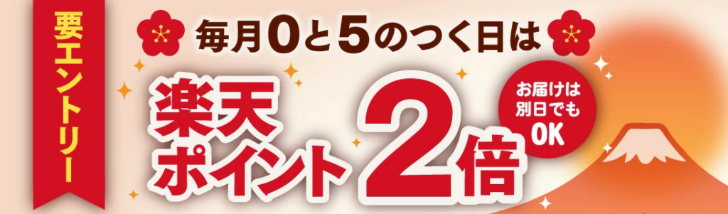 毎月0と5のつく日は楽天ポイント2倍となります。