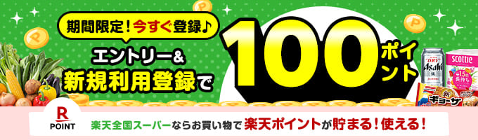 エントリー&新規利用登録で100ポイント 3/3~5/10