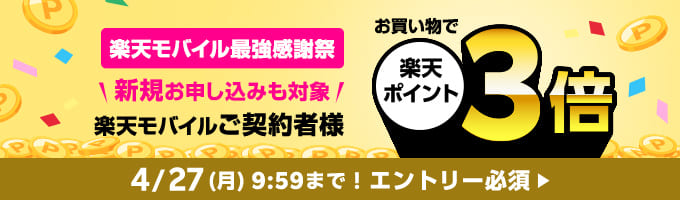 楽天モバイル契約者限定 ポイント3倍 4/1~4/27