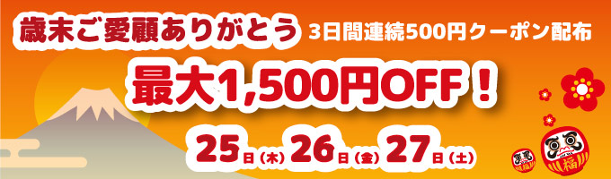歳末ご愛顧ありがとう500円クーポン 12/25・26・27