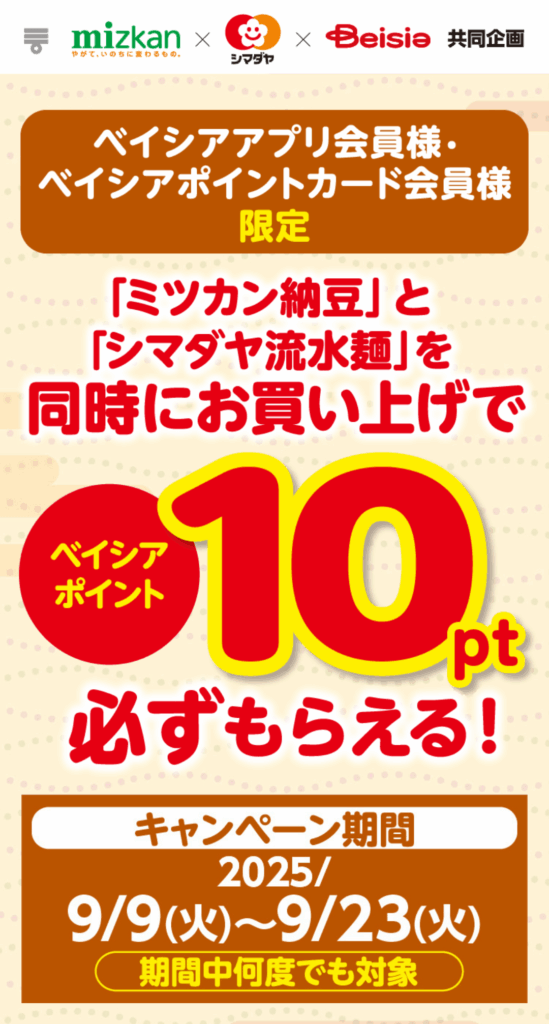 ミツカン納豆×シマダヤ流水麺 同時購入キャンペーン 9/9~9/23