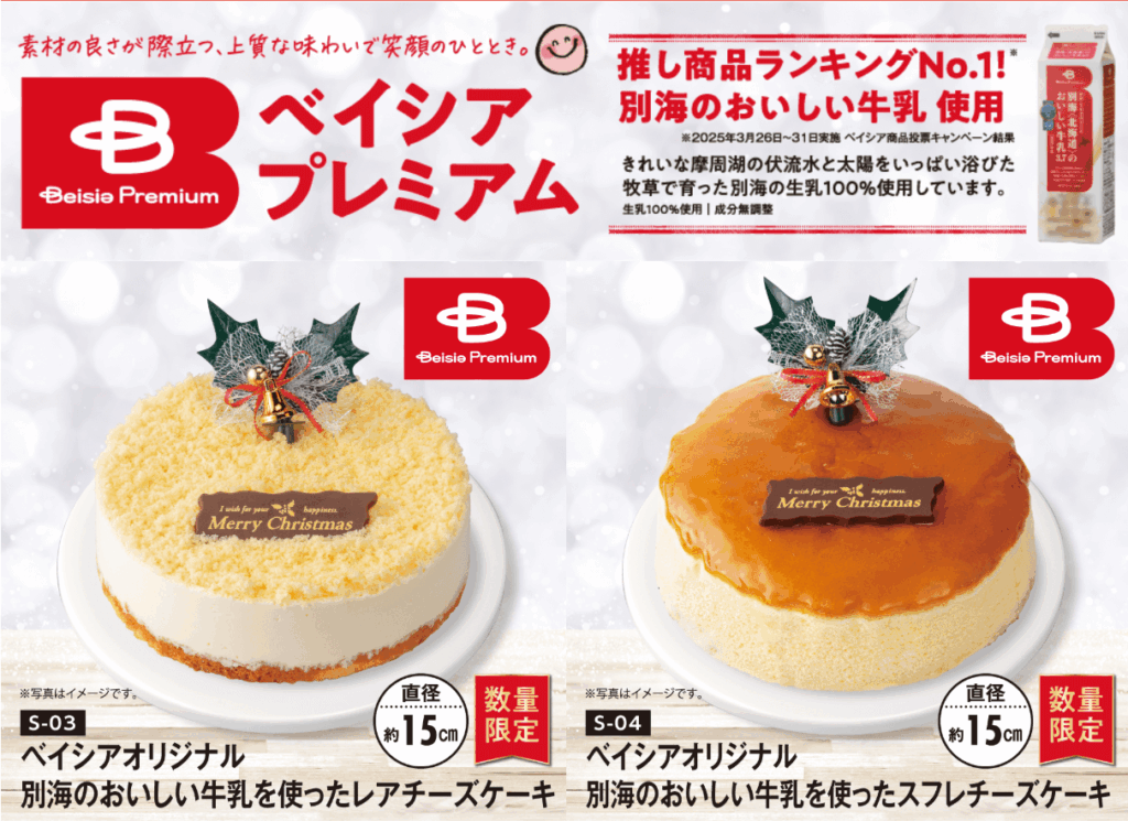 BeisiaPremiumの代表商品、別海のおいしい牛乳を使用したケーキです。