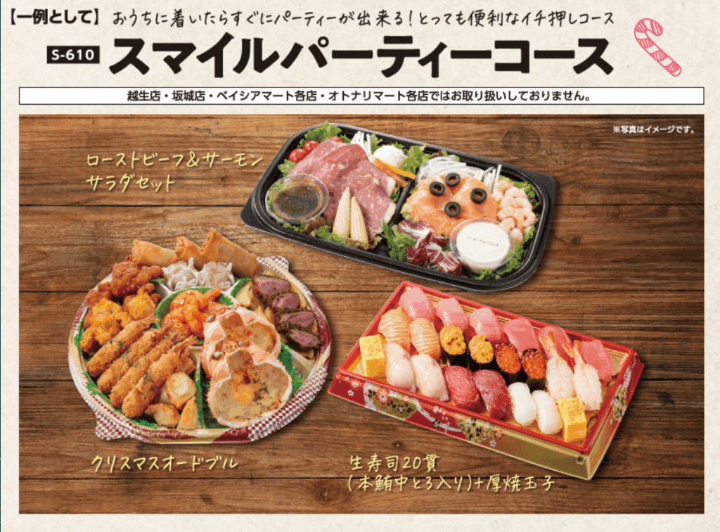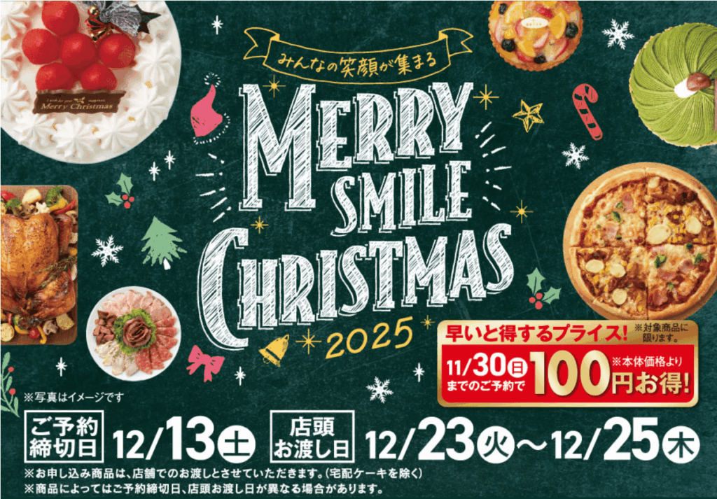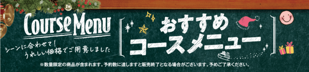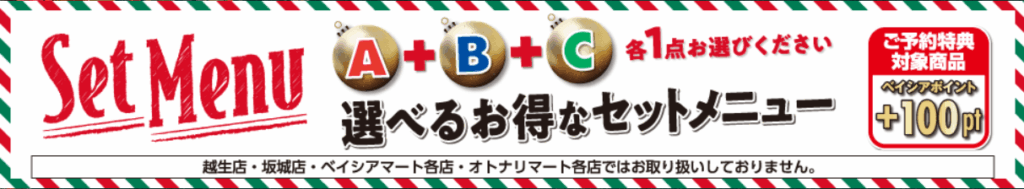 2025年のクリスマスメニューの予約が始まりました。ベイシアアプリからの予約がお得になるのでおススメです。