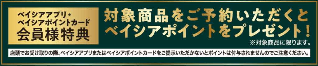 早いと得するプライスということで、11/30(日)までの予約で、対象商品に限り100円引きとなります。さらに、ベイシアポイントがプレゼントされる商品もあるので、よりお得に購入することができます。