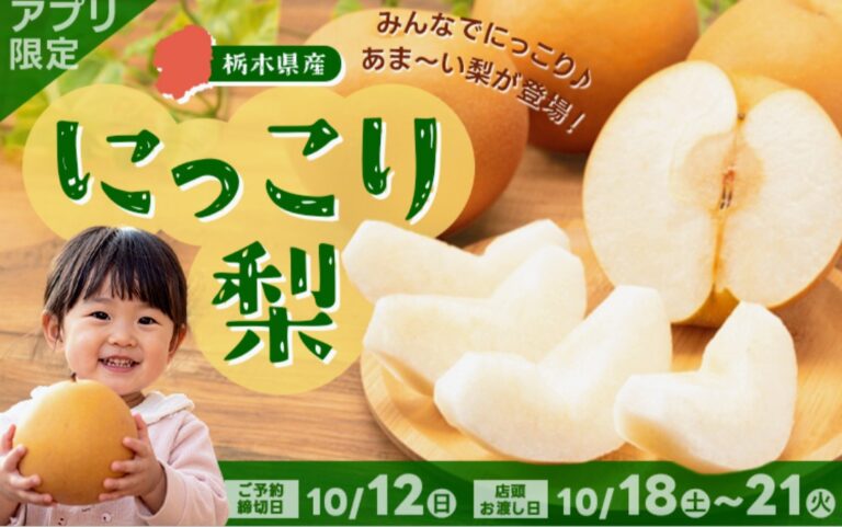 ベイシアアプリのご予約ページに「栃木県産 にっこり梨」の予約受付が始まりました。