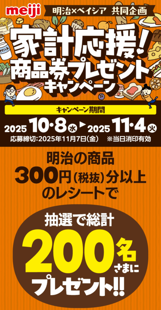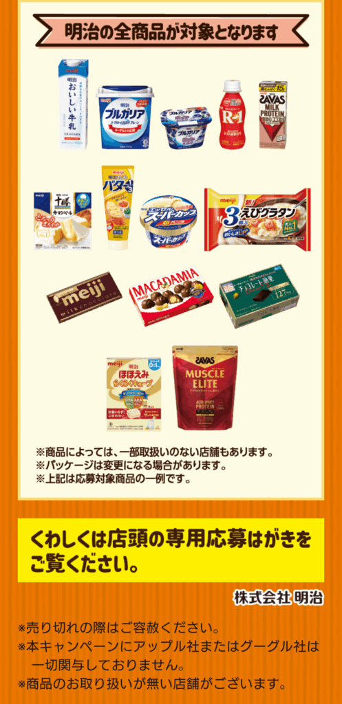 明治 レシート応募キャンペーン 10/8~11/4 応募締切11/7