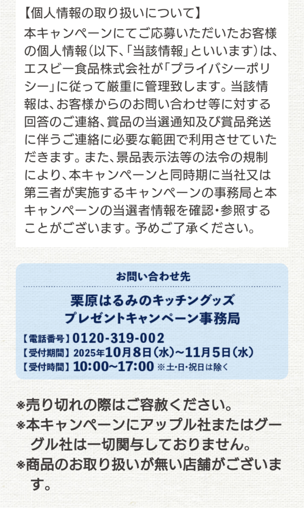 S&B レシート応募キャンペーン 10/8~10/28 応募締切11/4