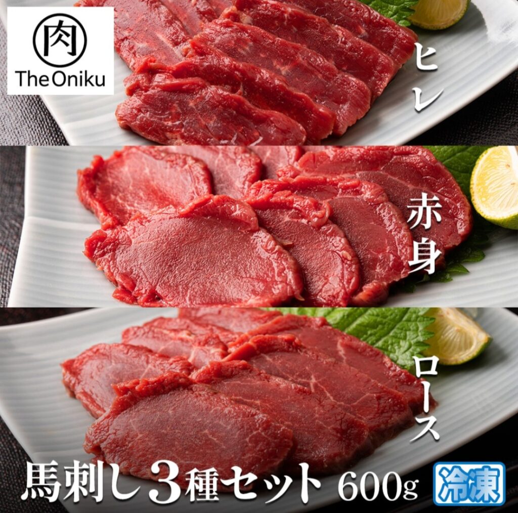 The Oniku 馬刺し3種セット 計600g(ヒレ、赤身、ロース) 税込6,580円