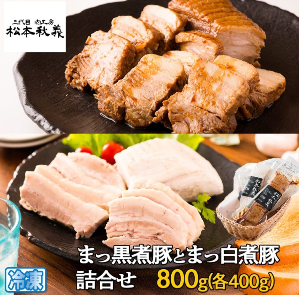 三代目!肉工房 松本秋義 まっ黒煮豚とまっ白煮豚詰合せ 計800g(各400g) 税込4,320円