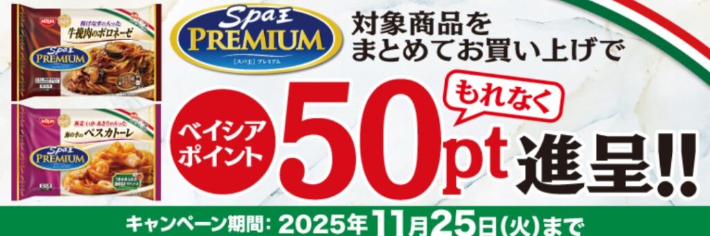 1回の会計で対象商品を2個以上まとめて購入でベイシアポイント50Pt獲得
