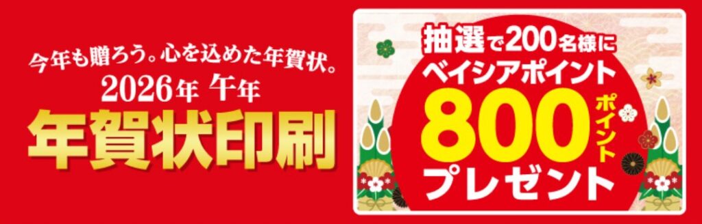 年賀状印刷を注文して会計で抽選で200名にベイシアポイント200Ptプレゼント