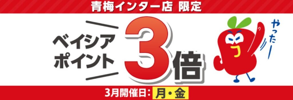 青梅インター店限定 ポイント3倍 毎週月曜、金曜