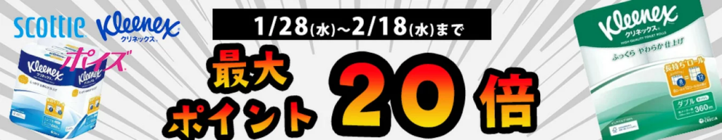こちらはエントリー不要の為、対象商品を購入するだけでポイントが最大20倍も獲得することができます。