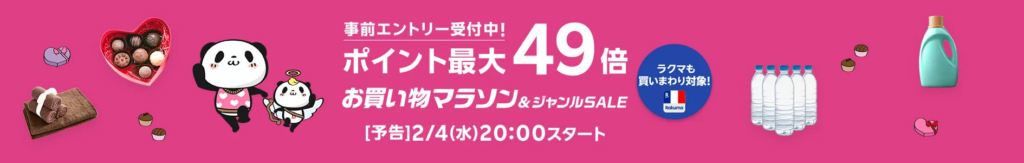 - 事前エントリー可 2月の楽天お買い物マラソン 2/4(水)20:00~2/10(火)1:59