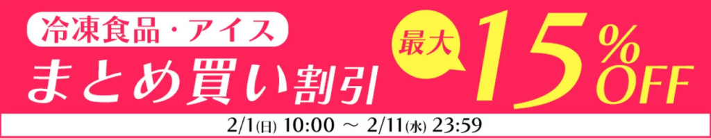 - 冷凍食品・アイスまとめ買い割引キャンペーン 2/1~2/11 23:59