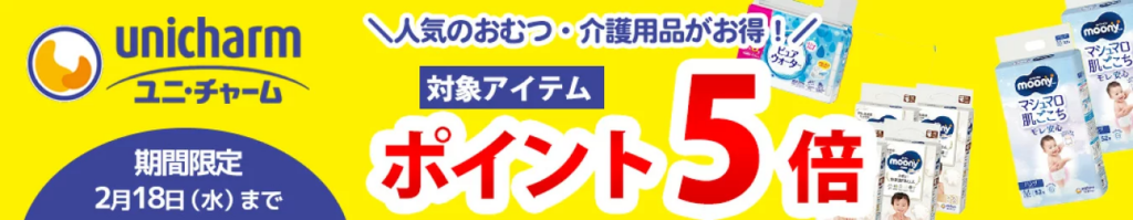 - ユニ・チャーム 対象アイテムポイント5倍 2/18(水)23:59まで